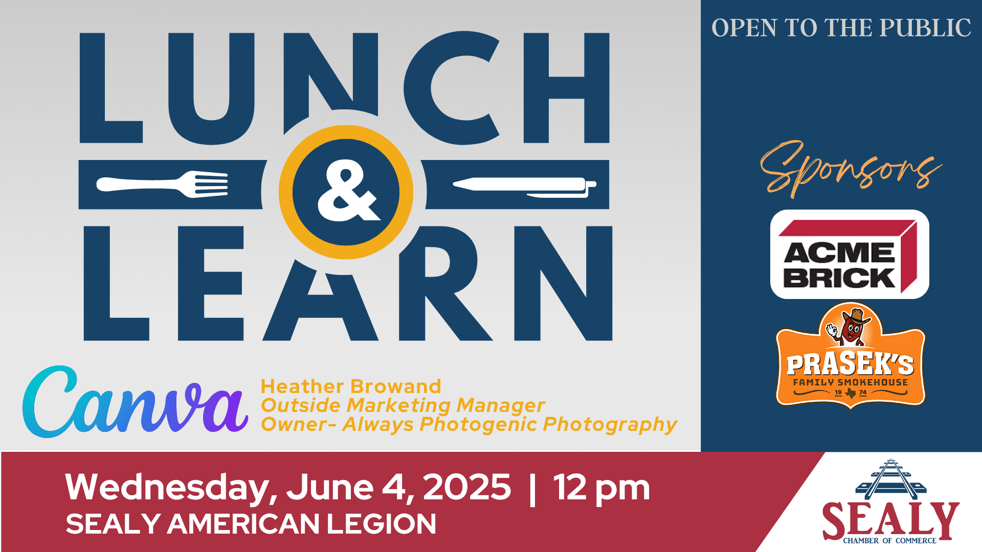 🍴Lunch & Learn- Chamber updates & Canva Class with Heather Browand- Outside Marketing Manager