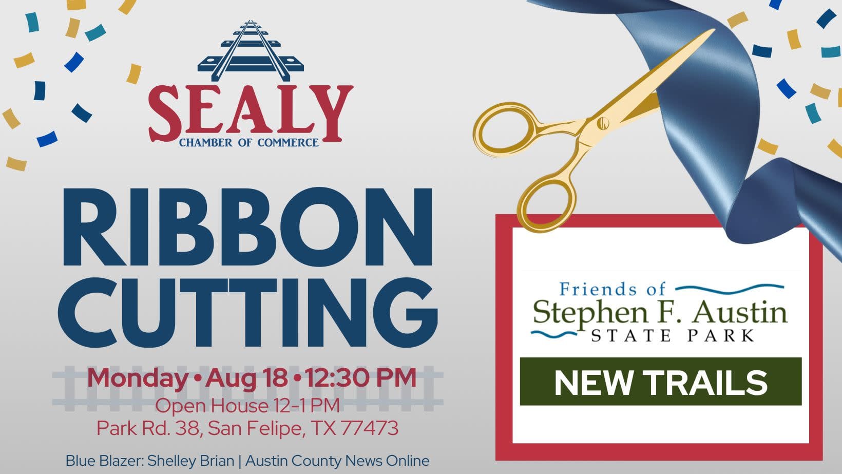 Join us for a Ribbon Cutting for New Trails at Stephen F Austin State Park. All are welcome to come help us celebrate.Images