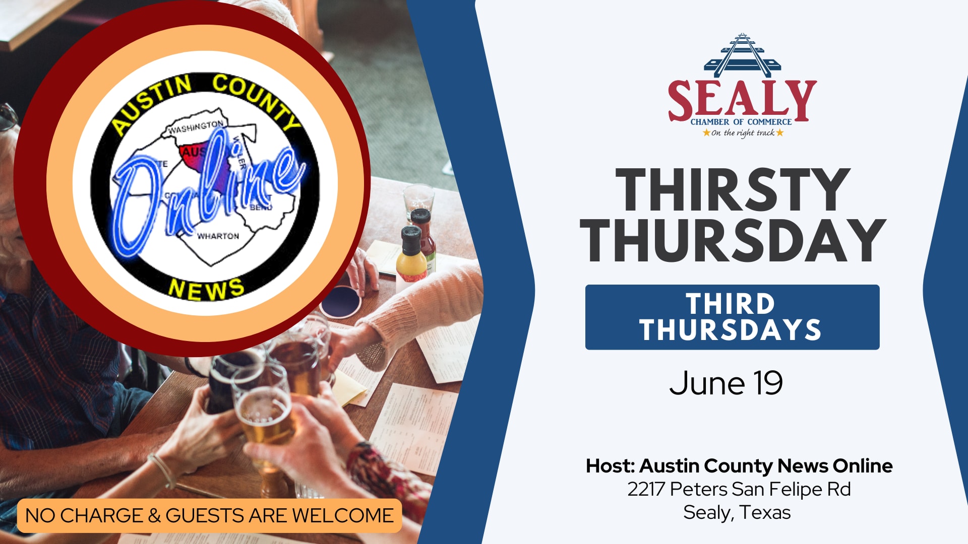 Join us for our Thirsty Thursday Networking Event! This is the perfect opportunity to connect with like-minded professionals, expand your network, and enjoy a relaxed evening with great company. No RSVP is needed, and everyone is welcome to attend. Whether you're looking to make new business connections, just make new friends in Sealy, or just want to unwind after a long day, we look forward to seeing you there! Don't miss out on this fantastic networking opportunity. Come as you are and bring your business cards.
