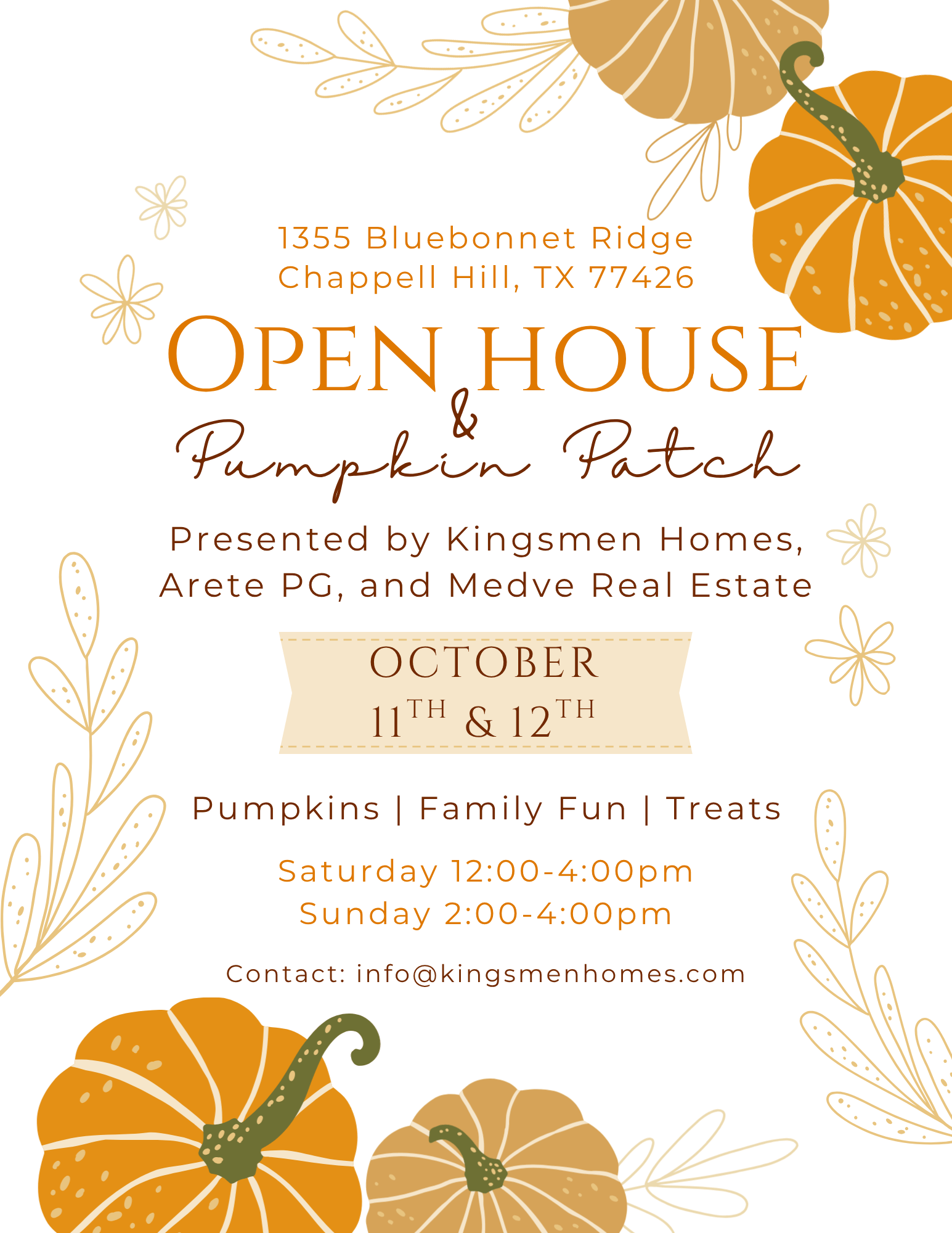 π Fall fun meets dream-home shopping! Join us for our Open House & Pumpkin Patch in beautiful Chappell Hill
