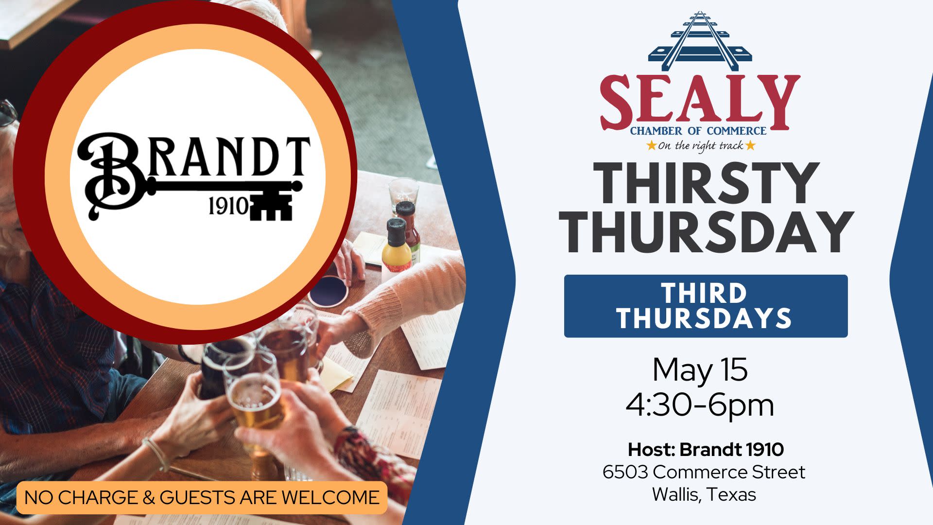 Join us for our Thirsty Thursday Networking Event! This is the perfect opportunity to connect with like-minded professionals, expand your network, and enjoy a relaxed evening with great company. No RSVP is needed, and everyone is welcome to attend. Whether you're looking to make new business connections, just make new friends in Sealy, or just want to unwind after a long day, we look forward to seeing you there! Don't miss out on this fantastic networking opportunity. Come as you are and bring your business cards.