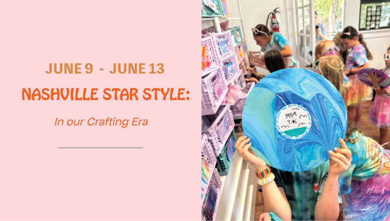 A Swiftie style crafting experience with a LOT of glam. This immersive camp celebrates the spirit of Nashville, giving kids a chance to explore their favorite singer through creativity & crafting. Channel YOUR favorite star while creating magical DIY projects inspired by the latest trends. Campers will design their own merch, create vinyl records, craft sparkly accessories, and style their own era in this pop (or country) paradise!! And quite possiby some karaoke! The hero of this camp will be a glammed out cowboy hat to strut at the Austin County Fair!
